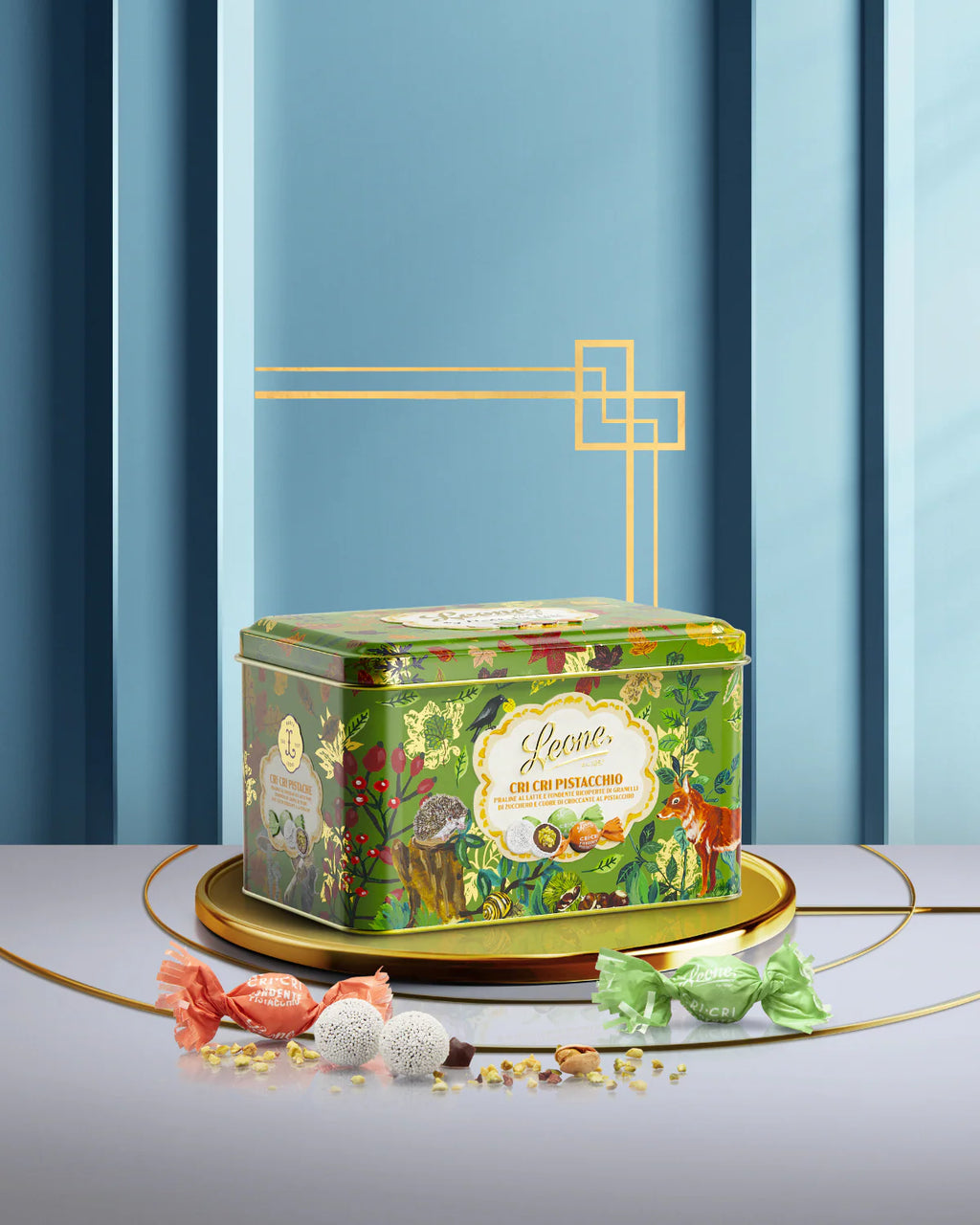 Un elegante scrigno colmo di deliziosi Cri Cri al pistacchio, un connubio di croccantezza unico a cui è impossibile resistere.