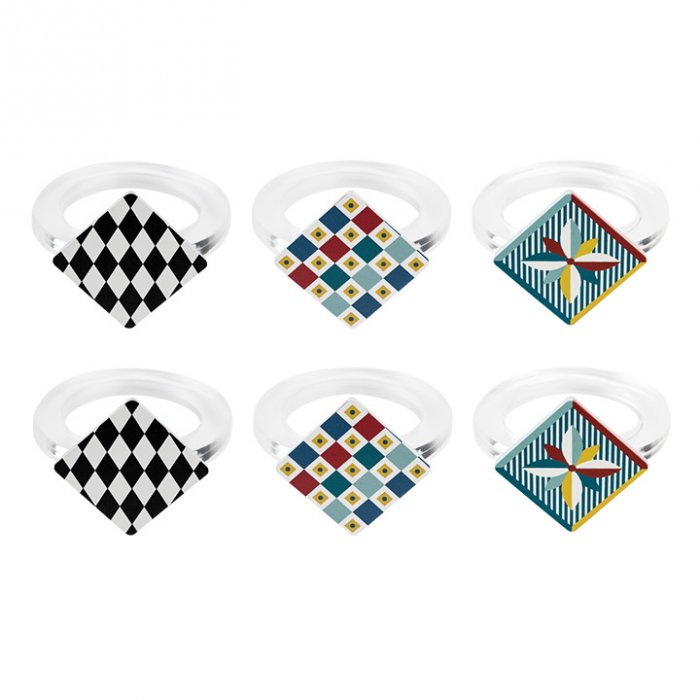 È un set di 6 pezzi, distinti in 3 varianti grafiche, abbinabili ai sottobicchieri.